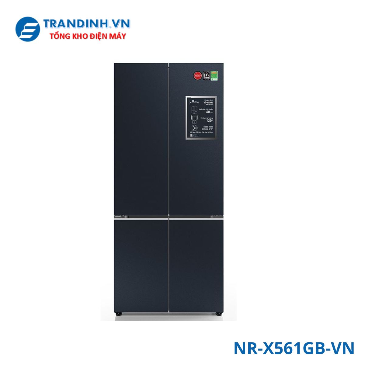 Tủ lạnh Panasonic NR-X561GB-VN là mẫu tủ lạnh Multidoor 4 cánh dung tích lớn 510 lít, phù hợp cho gia đình từ 4 – 5 người hoặc gia đình có nhu cầu lưu trữ thực phẩm nhiều. Sản phẩm gây ấn tượng với thiết kế mặt vân đá kim cương màu xanh navy cao cấp, không gian lưu trữ rộng rãi cùng các công nghệ bảo quản thực phẩm hiện đại, đáp ứng tốt nhu cầu sử dụng trong các căn bếp sang trọng và hiện đại.